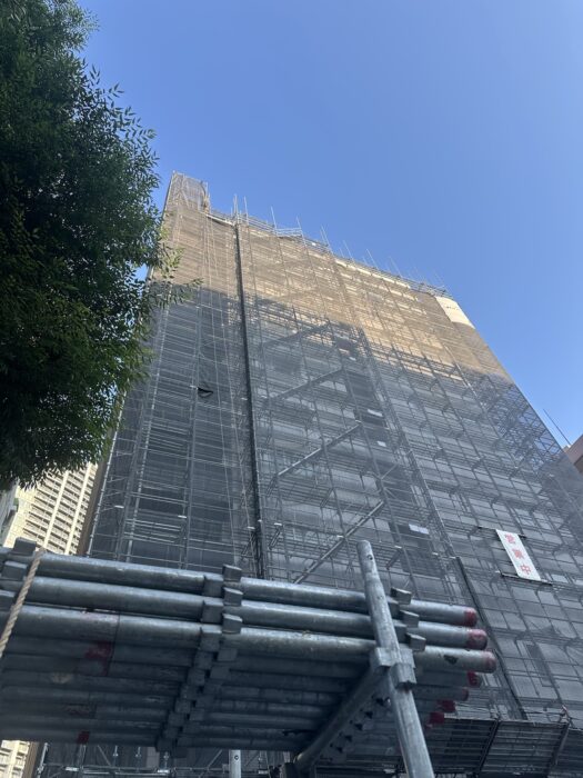 歩行者の通行が多い歩道にトラックを入れての作業だったので、部材を運搬する際は第三者との接触にかなり注意を払って作業しました。
